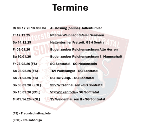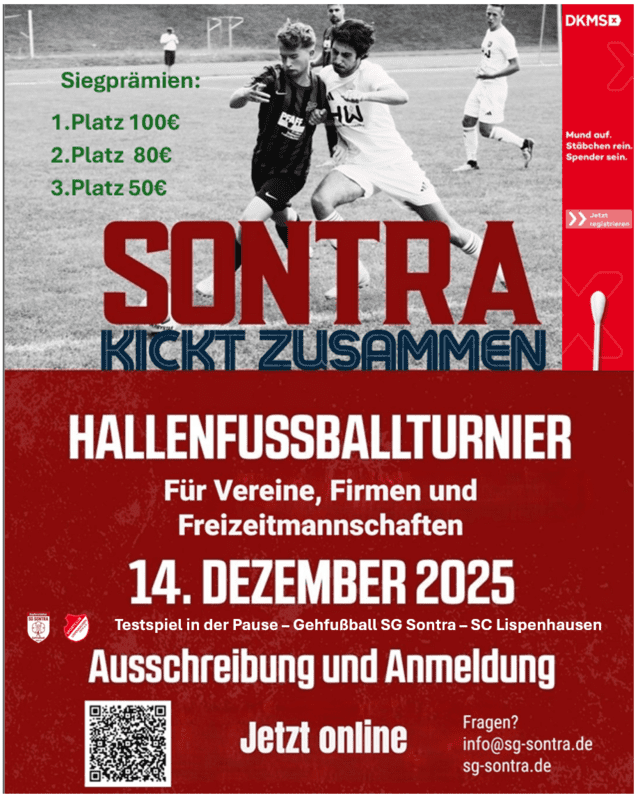 Im Rahmen des Hallenturniers der SG Sontra am 14.12. besteht gegen 13.00 Uhr die Möglichkeit sich einen Eindruck vom Gehfußball zu machen. Alle Inform…