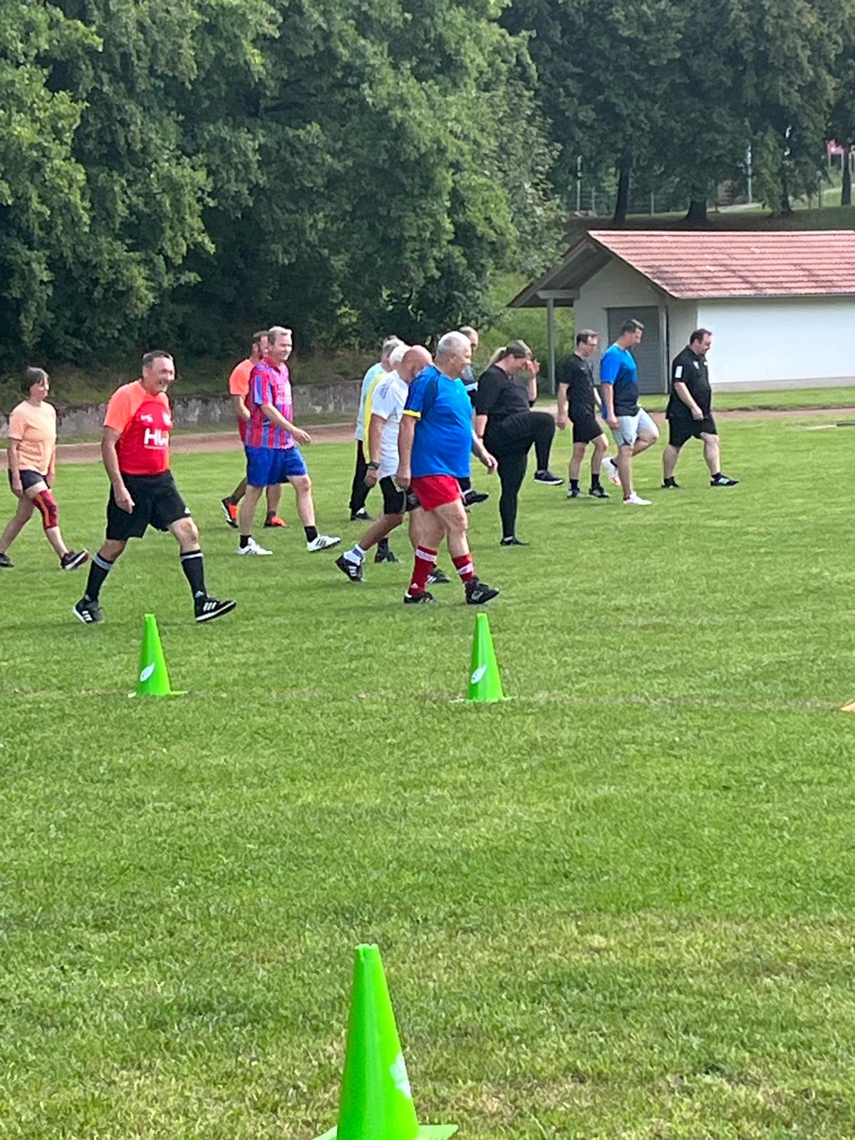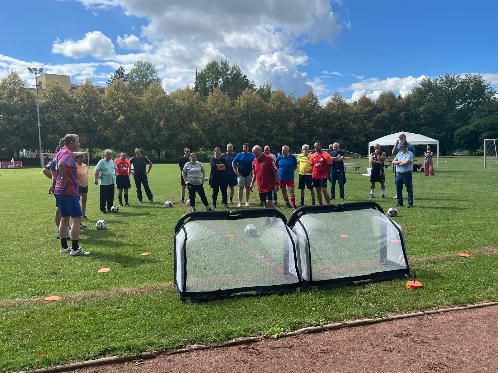 Laufen ist verboten! Gehen bleibt Pflicht – so werden Verletzungen vermieden und auch ältere Spieler erleben den Fußballspaß in entspannter Atmosphäre. Gespielt wird auf kleineren Feldern und mit kleineren Toren – ohne Torwart, aber mit viel Freude am Spiel.