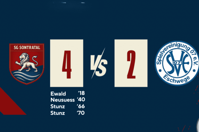 Im AKE-Kreispokal gewinnt SG Sontratal mit 2:0 auf der Gänsewiese und feiert das achte ungeschlagene Spiel in Serie.