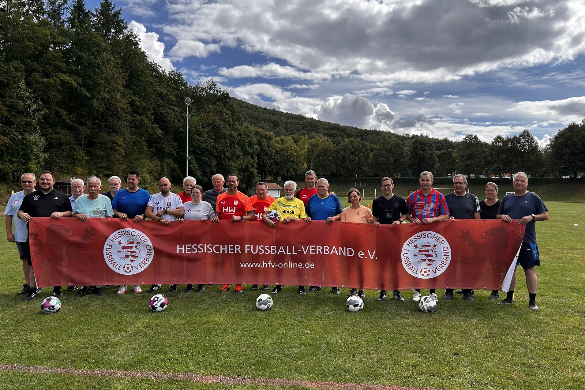 Werner Abraham vom Hessischen Fußball-Verband reiste extra aus Südhessen an, um die 16 Teilnehmerinnen und Teilnehmer – darunter vier Frauen – anzuleiten.