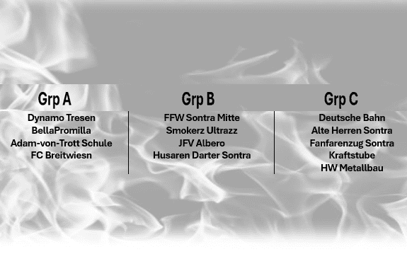 Gruppe B hat definitiv die Zutaten für Drama, Tempo und pure Leidenschaft. FFW Sontra Mitte kommt mit ordentlich Erfahrung daher, aber Smokerz Ultrazz, JFV Albero und Husaren Darter Sontra haben schon mehr als einmal bewiesen, dass Energie und Teamgeist die großen Favoriten ins Wanken bringen können. Hier dürften wir Atem-anhaltende Duelle und vielleicht sogar eine kleine Sensation erleben.